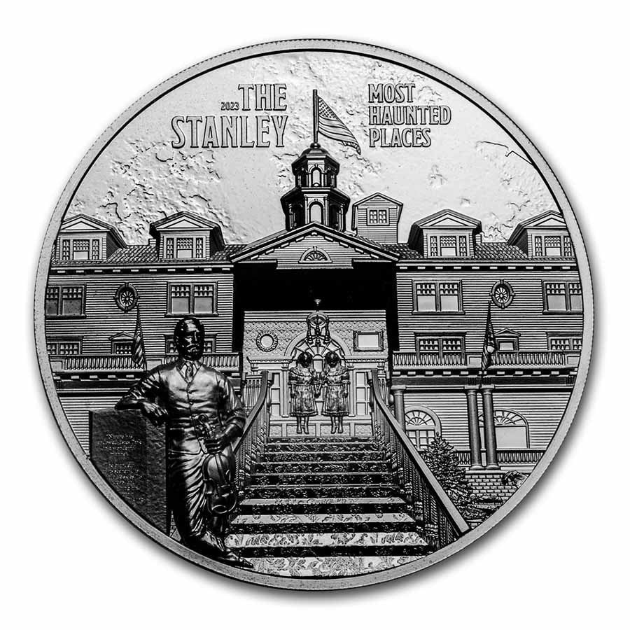 This incredible Black Proof is the first coin in the series. This Ultra High Relief coin has a mintage of only 1,909 pieces worldwide. The mintage matches the year the hotel was opened.