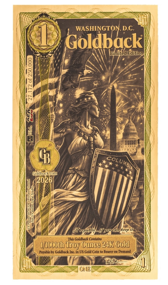 1 Washington DC Goldback - Aurum Gold Note (24k)